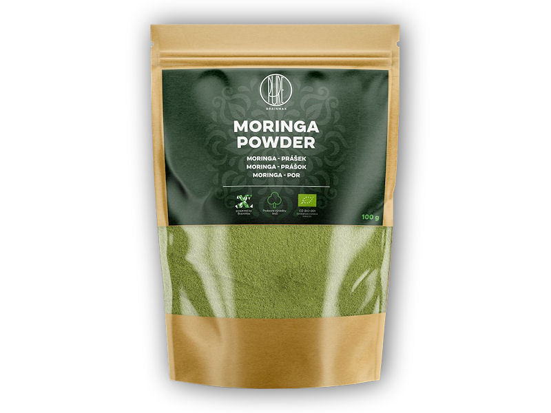 Moringa je přirozeným zdrojem vitamínů a minerálů. BrainMax Pure Moringa je 100% organický prášek, který je vyrobený z listů moringy, které obsahují důležité živiny. Sbírané listy se následně při nízkých teplotách melou na jemný prášek. Díky tomu si Moringa zachová všechny důležité živiny. Má překvapivě sladkou chuť, jemnou konzistenci a prášek je snadno rozpustný. Neobsahuje žádná barviva a je v certifikované BIO kvalitě. To znamená, že neobsahuje pesticidy ani jiné škodlivé látky. Je vhodný pro vegetariány i vegany.